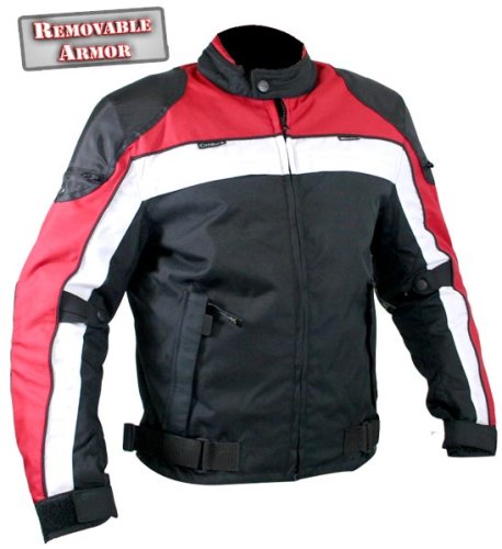 Men's Red Cordura Jacket. This jacket is fully loaded with features, Made of 100% Cordura Waterproof Fabric. Featuring special breathable lining, micro-fleece lined rolled collar, full sleeve zip out liner, velcro cuffs closure, adjustable waist and elbows. Shoulders and back armor included.View product details at Amazon.com